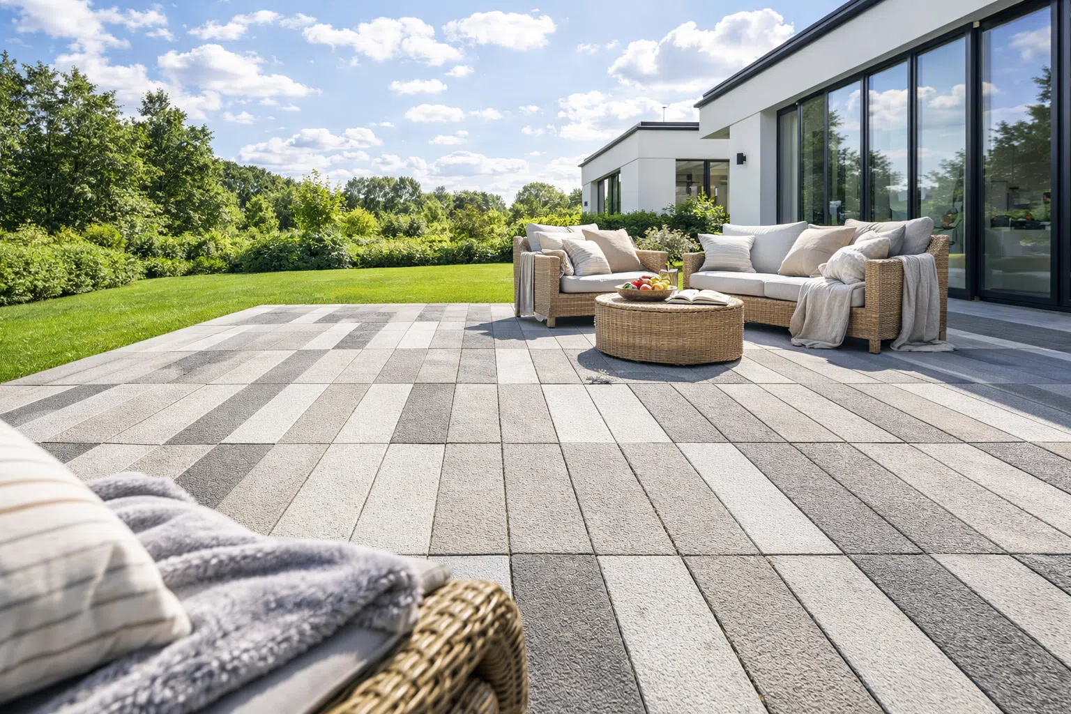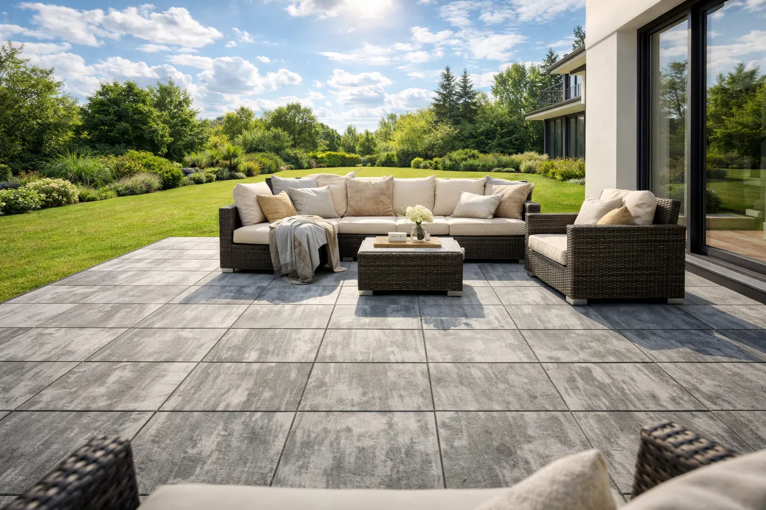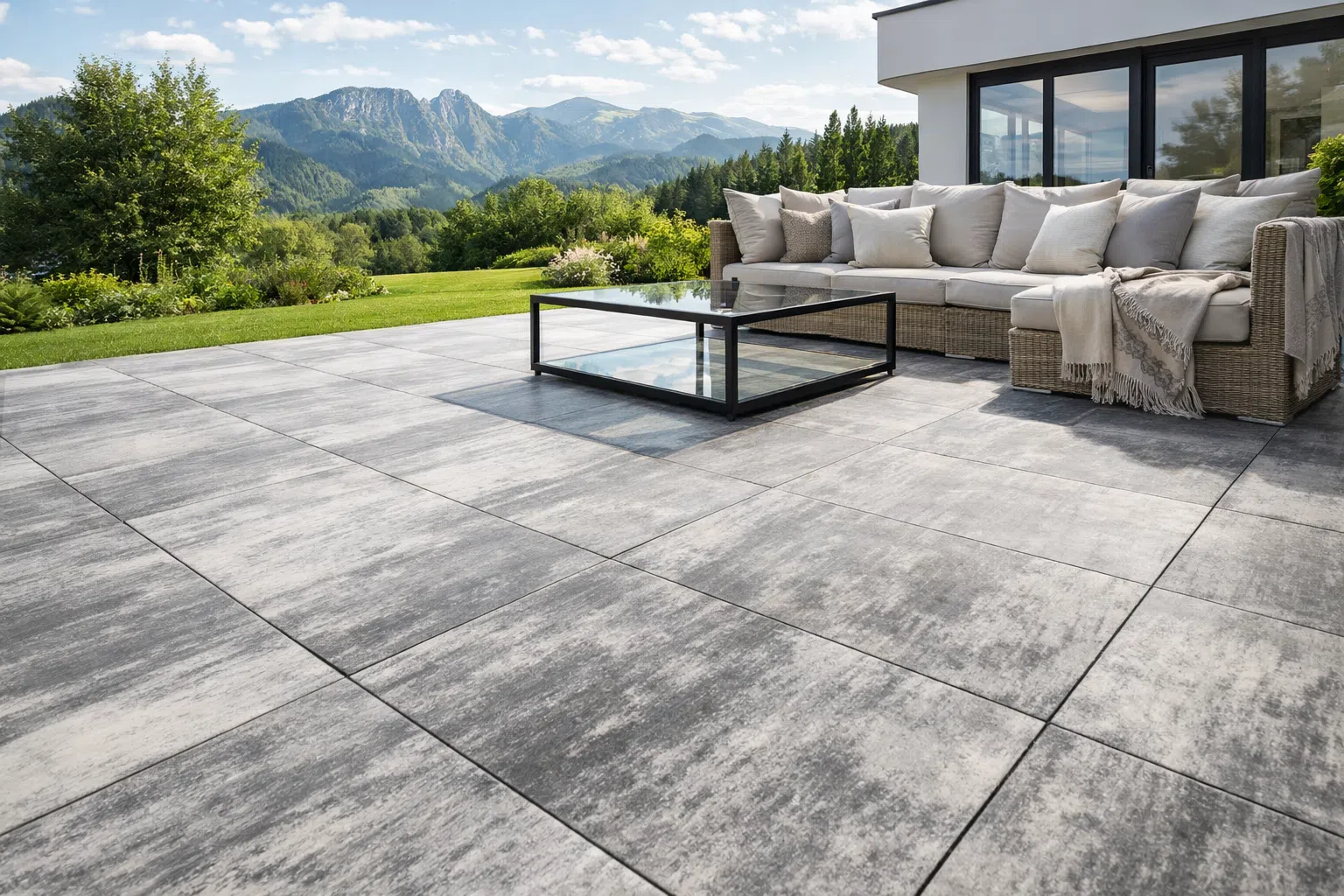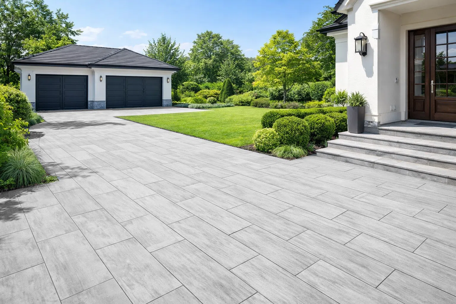 Płyty wielkoformatowe to nowoczesna alternatywa dla tradycyjnej kostki brukowej. Duże formaty minimalizują ilość fug, tworząc elegancką, minimalistyczną powierzchnię idealną na tarasy, patio oraz strefy wejściowe. To rozwiązanie szczególnie polecane do nowoczesnych realizacji, gdzie liczy się estetyka, prostota i przestrzeń.